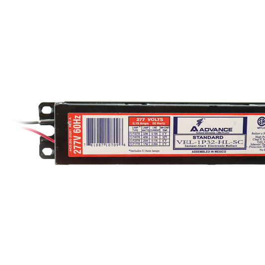 ADVANCE VEL-1P32-SC INSTANT START ELECTRONIC BALLAST, 277V, F17T8, 1 LAMP