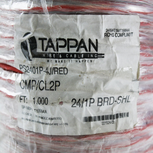 1000FT TAPPAN PS-2401P-J/RED 24/2 24AWG 1 PAIR BRAIDED SHIELDED CMP CL2P CABLE