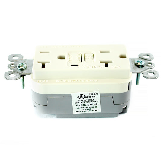 PASS & SEYMOUR PT2095-LA PLUG TAIL GFCI RECEPTACLE, 20A, 125V, LT ALMOND