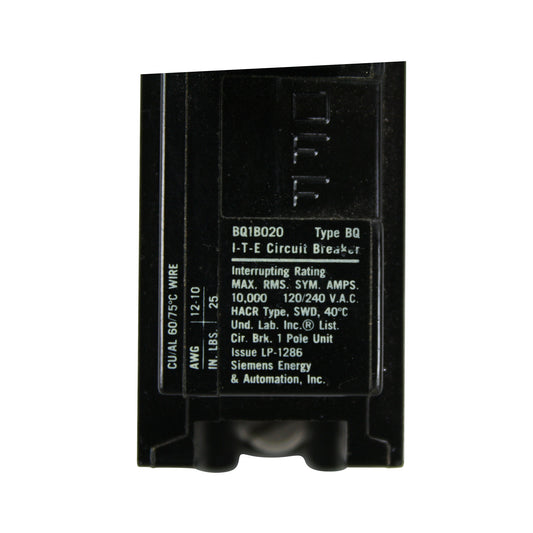 SIEMENS ITE BQ1B020 TYPE BQ 1-POLE 240V 20AMP BOLT ON CIRCUIT BREAKER