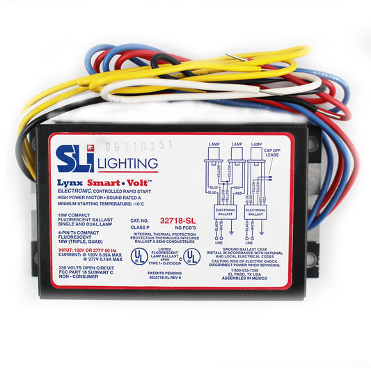 SLI LIGHTING 32718-SL ELECTRONIC FLUORESCENT BALLAST, CFL, 18W, 2 LAMP, 120/277V