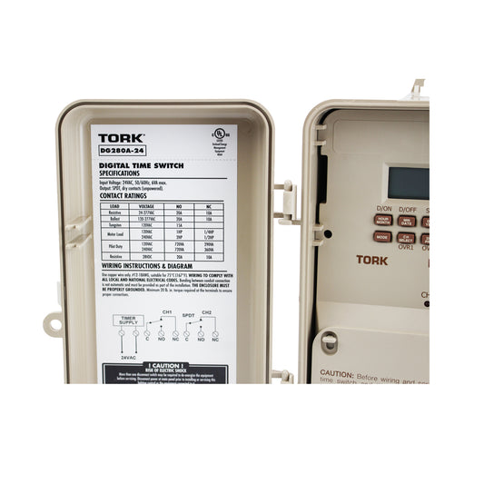 TORK DG280A-24 24 HOUR TIME SWITCH 2 CHANNEL 24 VAC 50/60 HZ INPUT SUPPLY, SPDT