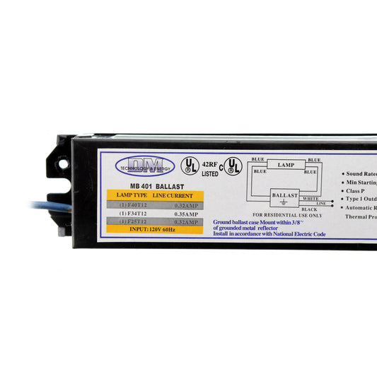 DM TECHNOLOGY MB-401 FLUORESCENT BALLAST, 1-LAMP, T12 F40T12, 40W, 120V