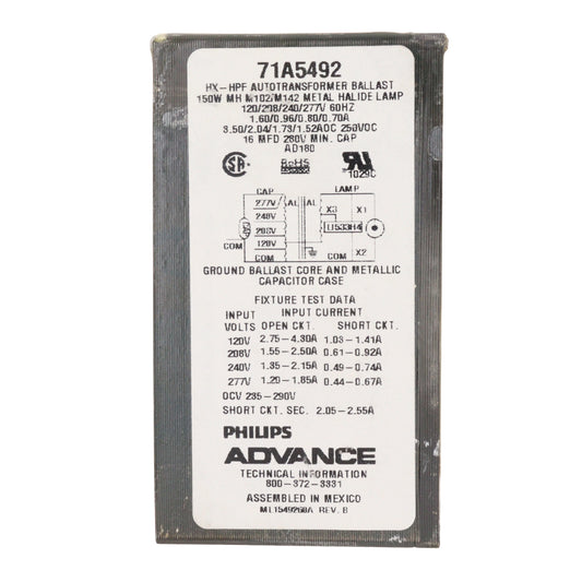 ADVANCE 71A5492 METAL HALIDE MAG BALLAST KIT, 150W M102/M142, 120/208/240/277V
