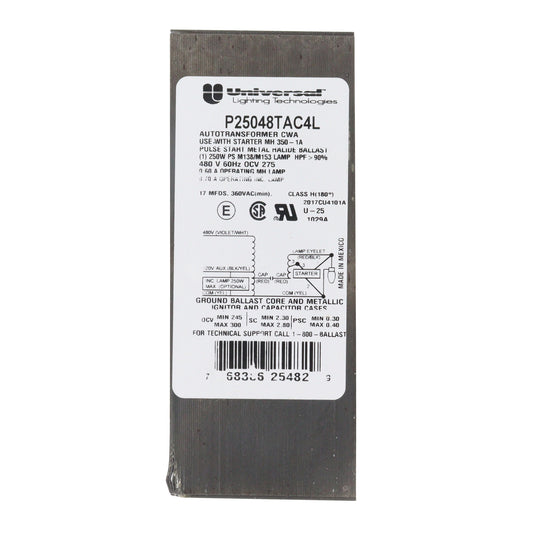 UNIVERSAL P25048TAC4L-500K PULSE START MH METAL HALIDE BALLAST, 250W, M138, 480V