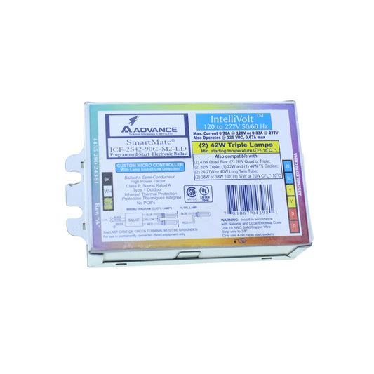 ADVANCE PHILIPS ICF-2S42-90C-M2-LD ELECTRONIC CFL BALLAST, 2 LAMP, 42W, 120/277V