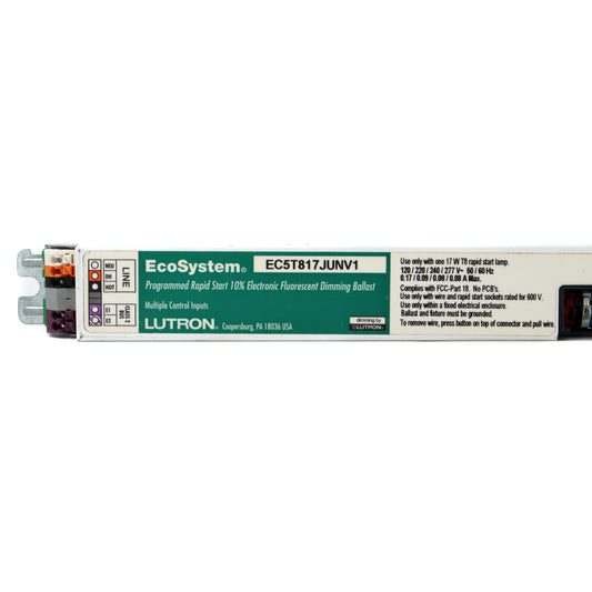 LUTRON EC5T817JUNV1 FLUORESCENT DIMMING BALLAST, 1-LAMP, F17T8, 17W T8, 120/277V
