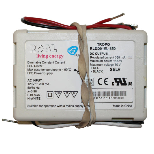 ROAL RLDD015L-350 SWITCH MODE LED POWER SUPPLY, DRIVER, 120V 16.8W, 350MA
