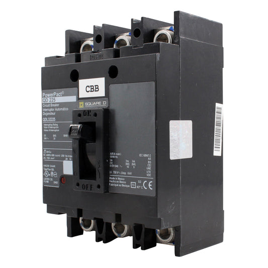 SQUARE D QDL32225 MOLDED CASE CIRCUIT BREAKER, QDL FRAME, 3-POLE, 240V, 225A