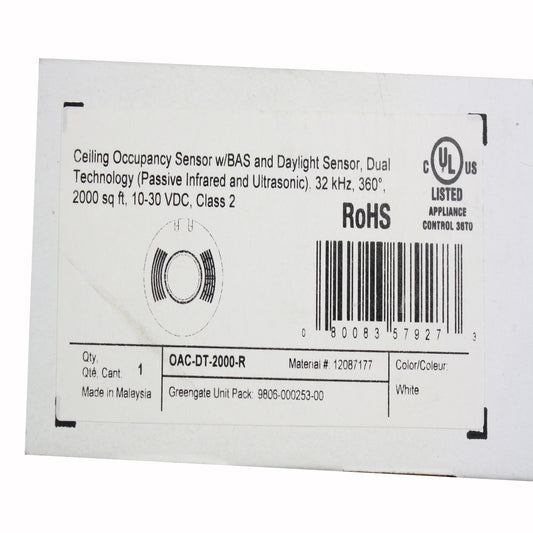 COOPER GREENGATE OAC-DT-2000-R MICROSET DUAL TECHNOLOGY CEILING OCCUPANCY SENSOR