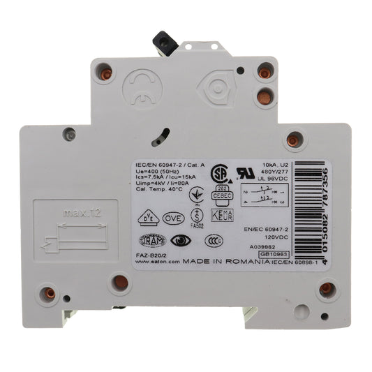 EATON FAZ-B20/2 SUPPLEMENTARY PROTECTOR, MINI-CIRCUIT BREAKER, 2-POLE, 20A
