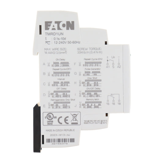 EATON TMRD1UN TIMING RELAY, PLUG-IN SOLID STATE, 6A-10A, SPDT