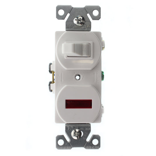 EATON COOPER 277W-SP-L TOGGLE SWITCH W/ PILOT LIGHT, 1-POLE, 15A, 120V, WHITE
