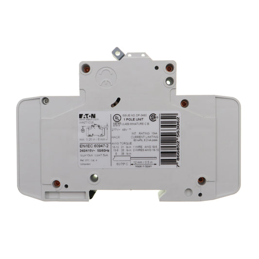 EATON WMZS1C07 MINIATURE CIRCUIT BREAKER, DIN MOUNT, 1-POLE, 277VAC 48VDC, 7A