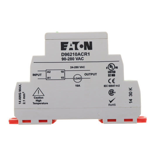 EATON D96210ACR1 D96 SOLID-STATE RELAY, SPST-NO, LED INDICATOR, 90-280VAC, 10A