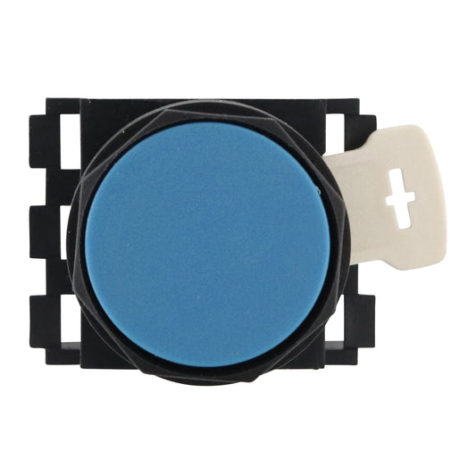 EATON E22P6 NON-ILLUM FLUSH PUSH-BUTTON OPERATOR, BLK BEZEL, BLUE LENS, 22MM