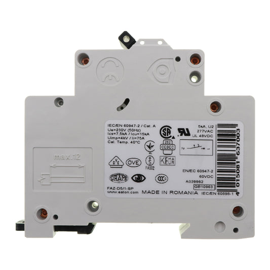 EATON FAZ-D5/1-SP SUPPLEMENTARY PROTECTOR, MINI-CIRCUIT BREAKER, 1-POLE, 5A, 277