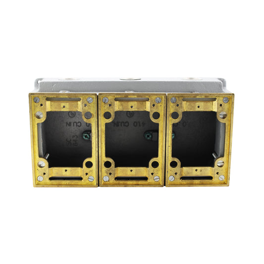 THOMAS & BETTS 3 GANG CAST IRON DEEP FLOOR BOX BRASS TRIM