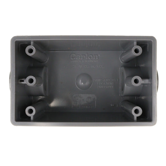 CARLON E981EFN WEATHERPROOF PVC ELECTRICAL FSC BOX, NON-METALLIC, 1-GANG, 3/4" K
