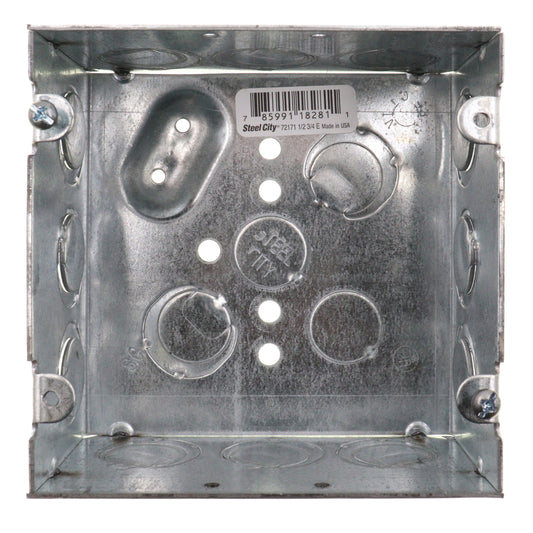 STEEL CITY 72171-1/2-3/4-E STEEL 2-GANG SWITCH BOX, 2-1/8" D, 4-11/16" SQUARE
