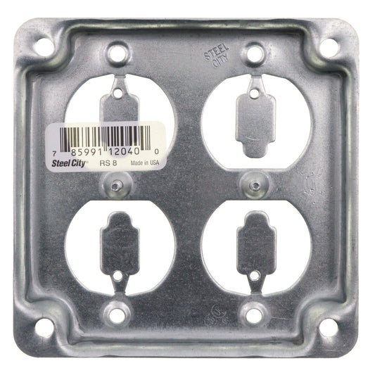 STEEL CITY RS8 STEEL 2-GANG DUPLEX OUTLET/RECEPTACLE COVER, 1/2" RAISED, 4-INCH
