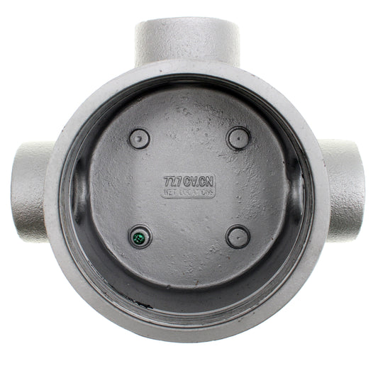 RED DOT S-48 S215E WEATHERPROOF ALUMINUM ROUND OUTLET BOX, (5) 3/4", 1-5/8" DEEP