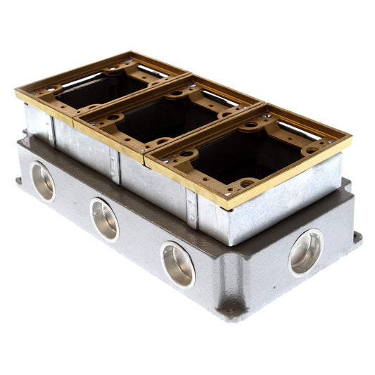 THOMAS & BETTS SP-643-1 3-GANG CAST IRON FLOOR BOX BRASS TRIM WATERTIGHT