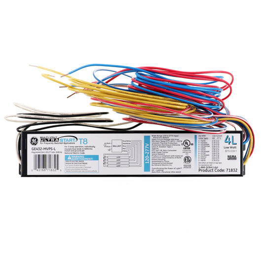 GE GE432-MVPS-L 71832 FLUORESCENT BALLAST, 4-LAMP, T8 F32T8, 32W, 120/277V