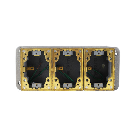 HUBBELL SYSTEMS B433361 CAST IRON 3-GANG DEEP FLOOR BOX WITH BRASS COLLAR