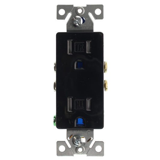 HUBBELL RRD15SBKTRZ DUPLEX DECORATOR RECEPTACLE OUTLET, TR, 15A, 120V, BLACK