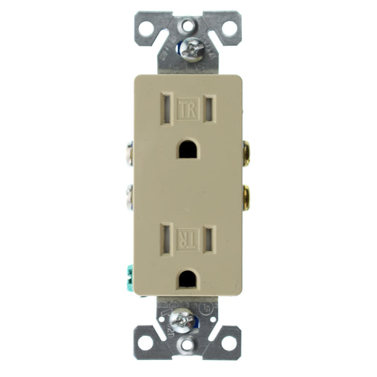 HUBBELL RRD15SITRZ DUPLEX DECORATOR RECEPTACLE OUTLET, TR, 15A, 120V, IVORY
