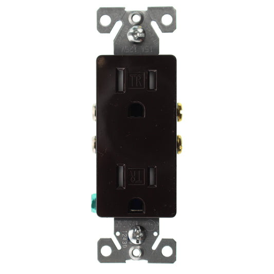 HUBBELL RRD15STRZ DUPLEX DECORATOR RECEPTACLE OUTLET, TR, 15A, 120V, BROWN