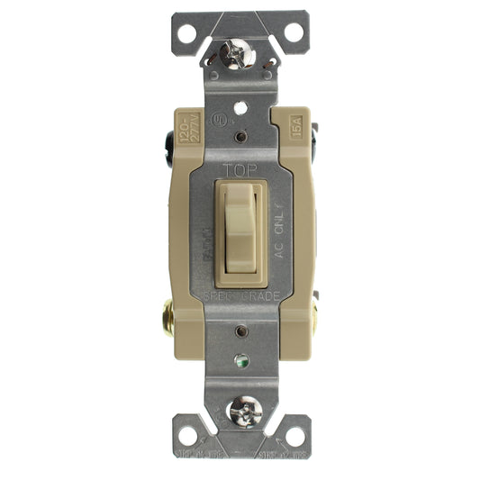 HUBBELL RS315Z TOGGLE SWITCH, 3-WAY, GROUNDING, 15A, 120/277V, BROWN