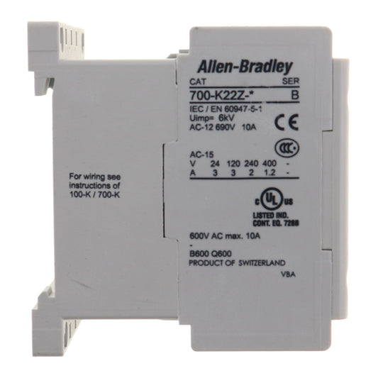 ALLEN-BRADLEY 700-K22Z/B SERIES B AUXILIARY CONTROL RELAY, 24V