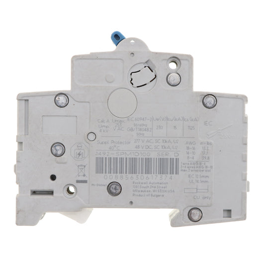 ALLEN-BRADLEY 1492-SPM1D100 MINI CIRCUIT BREAKER, D-TRIP, 1-POLE, 10A, 277V