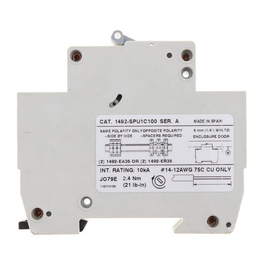 ALLEN-BRADLEY 1492-SPU1C100 MINI CIRCUIT BREAKER, C-CURVE, 1-POLE, 10A, 240VAC