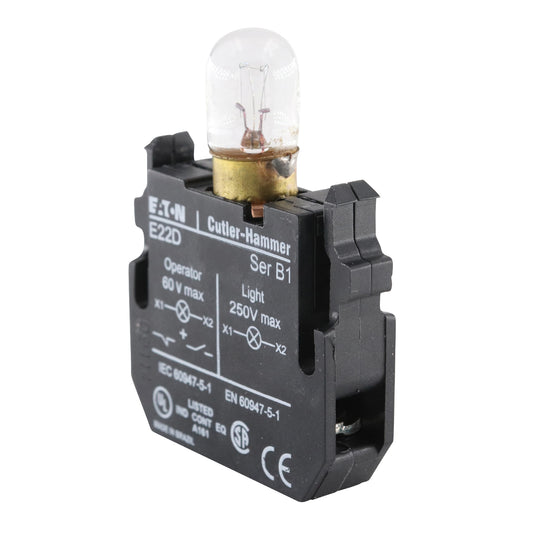 EATON E22D24 CONTACT BLOCK LIGHT UNIT FOR 22MM OPERATOR, 1-POLE, 60V/250V