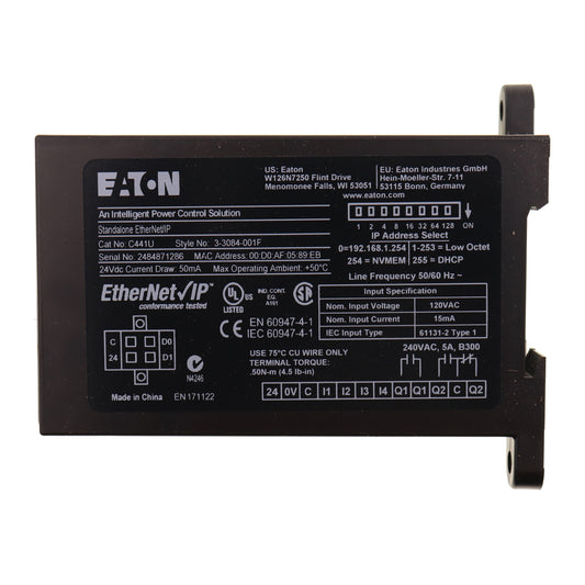 EATON C441U STANDALONE ETHERNET/IP/MODBUS COMMUNICATION ADAPTER, TCP/RTU, 120V
