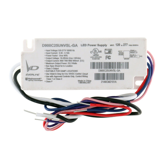 UNIVERSAL D900C25UNVSL-GA SELECTABLE MA DIMMABLE LED DRIVER, 25W 18-28V 120-277V