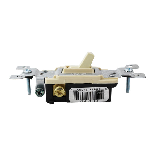 LEVITON 1453-I QUIET 3-WAY FLUSH TOGGLE SWITCH, SHALLOW BODY, 15A, 120V, IVORY