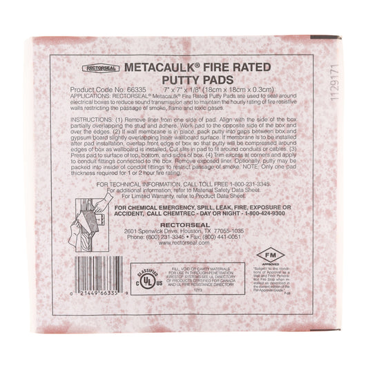 RECTORSEAL 66335 METACAULK FIRE RATED ELECTRICAL BOX PUTTY PAD, 7X7-INCH, 1-PACK