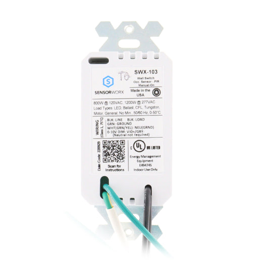 SENSORWORX SWX-103-WH WALL SWITCH OCCUPANCY SENSOR, MANUAL ON, 120/277V, WHITE