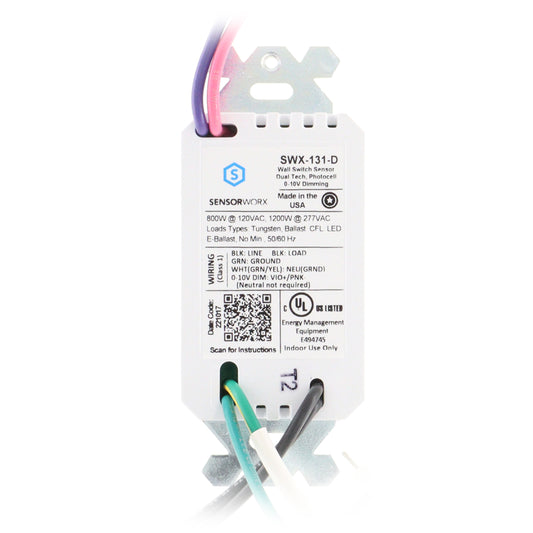 SENSORWORX SWX-101-1-D-WH WALL SWITCH OCCUPANCY SENSOR DIMMING LOW VOLTAGE WHITE