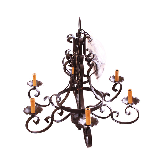 ARTE DE MEXICO CH16D WROUGH-IRON RUSTIC 6-LIGHT CHANDELIER, LARGE
