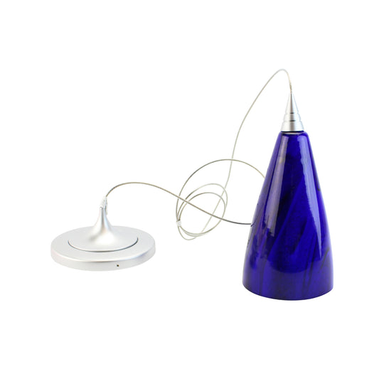 BRUCK LIGHTING ZARA 1 LIGHT PENDANT FIXTURE, CANOPY, HALOGEN, CHROME, BLUE GLASS
