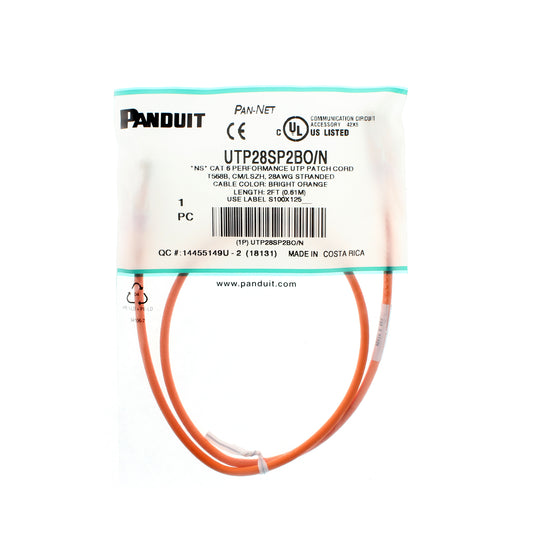 PANDUIT UTP28SP2BO/N CAT6 PERFORMANCE UTP PATCH CORD, 2-FEET, BRIGHT ORANGE