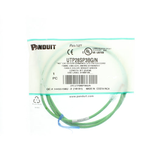 PANDUIT UTP28SP3BG/N CAT6 CABLE UTP PATCH CORD, 3-FEET, BRIGHT GREEN (5 PACK)