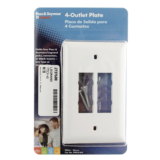 PASS SEYMOUR TPDC4-WV 1 GANG WALL FACE PLATE 4 PORT MODULAR, WHITE (10 PACK)
