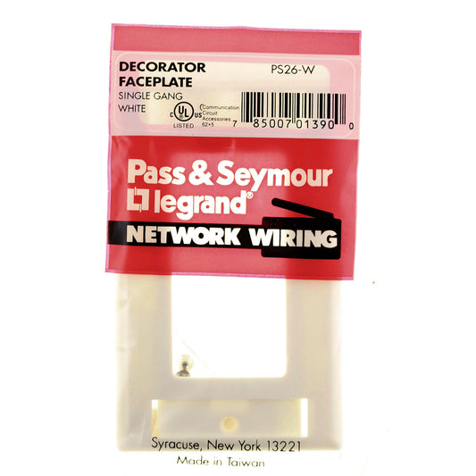 PASS & SEYMOUR PS26-W DECORATOR FACEPLATE, SINGLE GANG, WHITE (5 PACK)