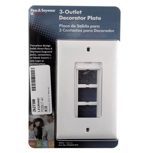 PASS & SEYMOUR PS26KIT-WV DECORA WALL PLATE, 3 PORT INSERT, WHITE (5 PACK)
